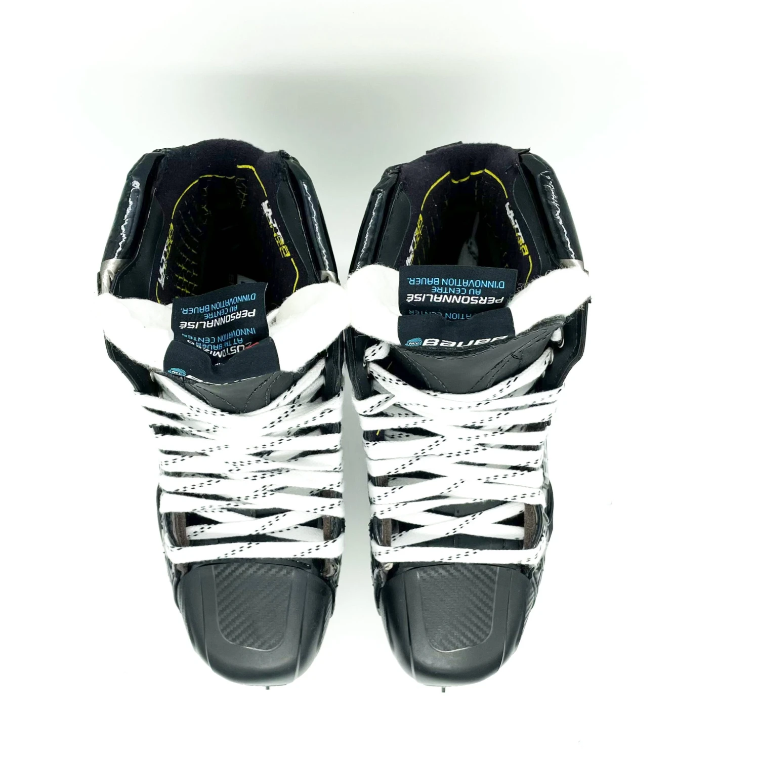 New Bauer Supreme Ultrasonic goalie skates from an NCAA team. Size 8.25L 7.875R with size 8 holders and LS5G steel.