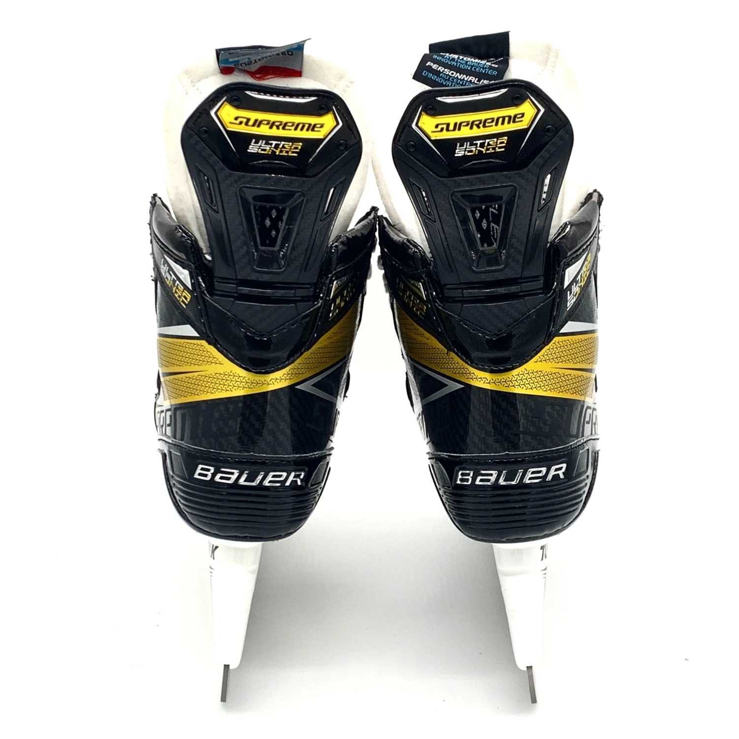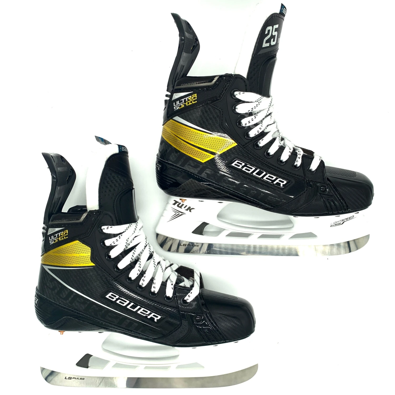 Bauer Supreme Ultrasonic skates from a CHL team. Size 8.25D with 272 Tuuk Lightspeed Edge holders and LS Pulse steel.