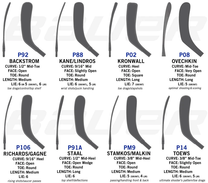 | Stick Specifications | Left – P92 (Matthews) – 55 Flex (Blade 1), Left – P92 (Matthews) – 65 Flex (Blade 1), Left – P92 (Matthews) – 70 Flex (Blade 1), Left – P88 (Kane) – 55 Flex (Blade 2), Left – P88 (Kane) – 55 Flex/Matte Non-Grip (Blade 2), Left – P88 (Kane) – 65 Flex (Blade 2), Left – P88 (Kane) – 65 Flex/Non-Grip (Blade 2), Left – PM9 (Stamkos) – 65 Flex (Blade 3), Left – P28 (Eichel) – 55 Flex (Blade 6), Left – P14 (Toews) – 65 Flex (Blade 9), Right – P92 (Matthews) – 55 Flex/Non-Grip (Blade 1), Right – P92 (Matthews) – 65 Flex (Blade 1), Right – P92 (Matthews) – 65 Flex/Max Blade (Blade 1), Right – P88 (Kane) – 55 Flex (Blade 2), Right – P88 (Kane) – 65 Flex (Blade 2), Right – P88 (Kane) – 70 Flex (Blade 2), Right – PM9 (Stamkos) – 65 Flex (Blade 3), Right – P28 (Eichel) – 55 Flex (Blade 6), Right – P28 (Eichel) – 65 Flex (Blade 6) |